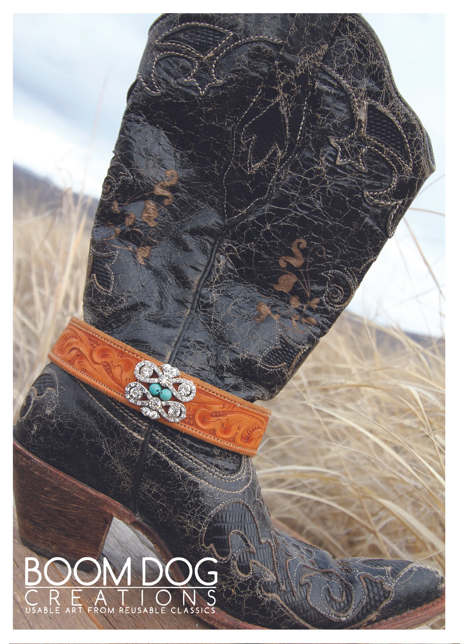 The Bootlets were born from another one of Kathy's reative moments. She travels all over the American West and loves to see all the beautiful boots people wear. But sometimes you want to dress up your look, add a little something fun and creative. That's where the Bootlet comes in. When Kathy debuted them she sold out in the hour.